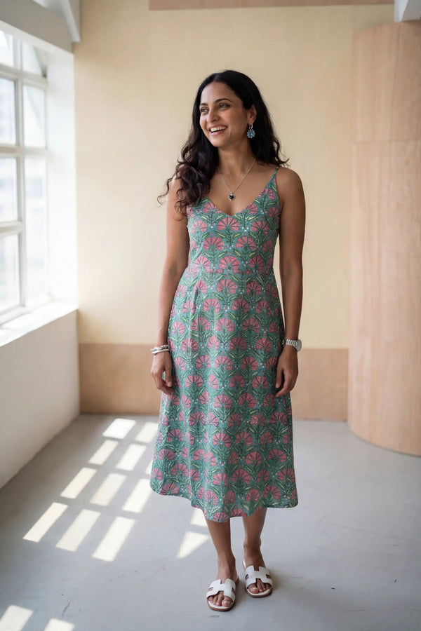 Maya Hand Block Printed A-Line Dress