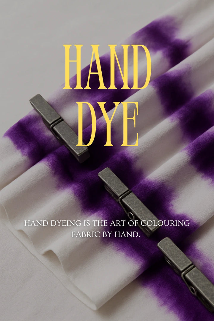 - Dyeing – The folded fabric is dipped into our AZO-FREE chemical-safe dyes ( in rich violet tones). The clamped areas resist the dye, leaving behind striking geometric designs, it's just beautiful to see this.