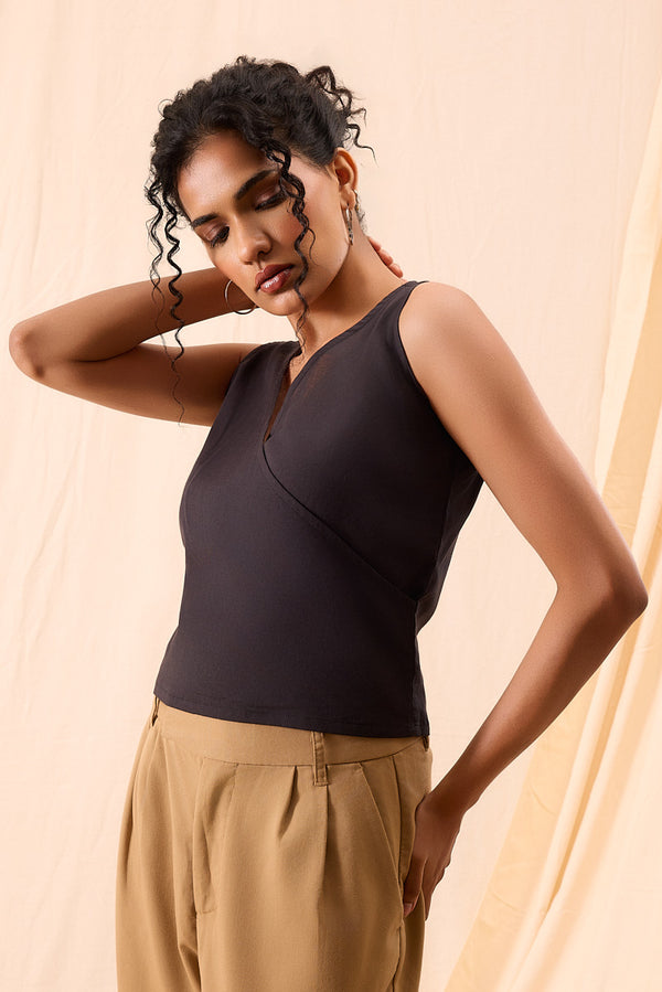 Nova Hand Block Printed Violet Leaf Sleeveless Top
