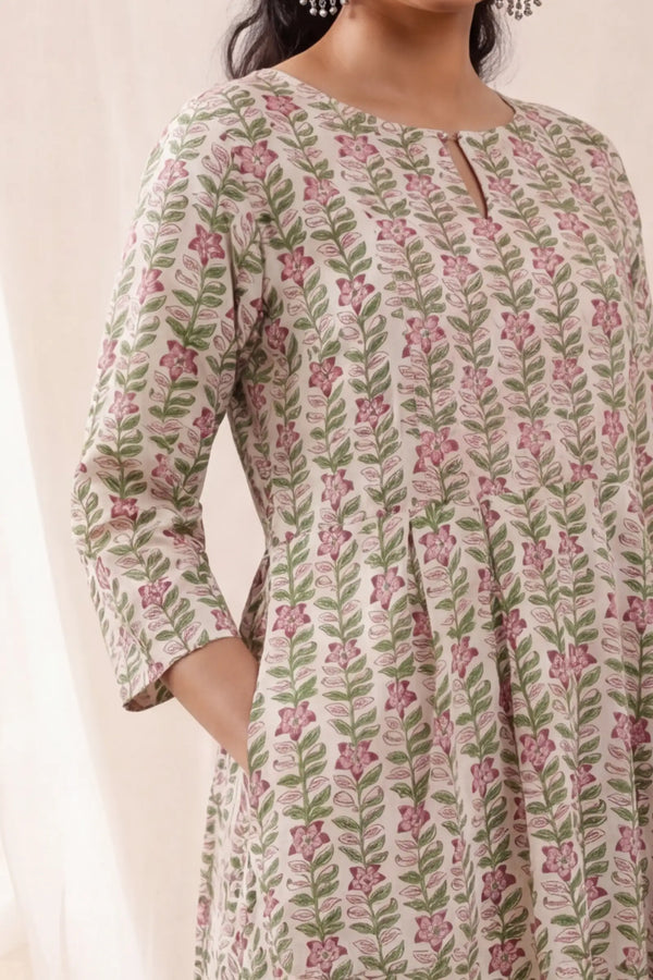 Ayesha Hand Block Printed Pintuck Dress
