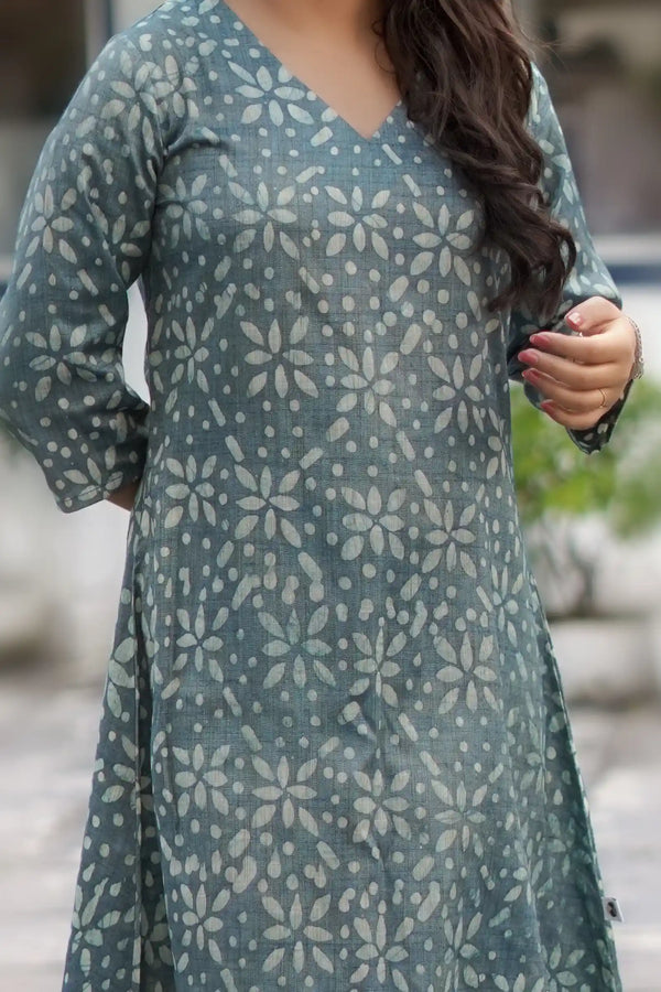 Fariha Hand Block Printed Grey Striped Culottes