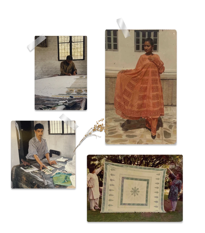It began with our grandmother, Mrs. Jameela Iyer, and her love for patterns, block printing, and design, a love that grew through her travels around the world, where every new pattern sparked inspiration. With a keen sense of colour and an eye for pairing hues and designs, she was inspired to take up block printing as a hobby.